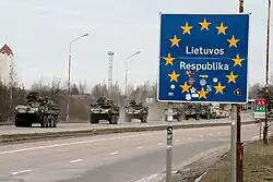 On 1 May 2004, when both Poland and Lithuania joined the European Union, this border became an internal border of the European Union.[22] On 21 December 2007, Poland and Lithuania acceded to the Schengen Agreement.[23] After this, crossing the border became easier, as EU internal borders are open to all traffic with little need for control. There are still, however, occasional customs and police controls against smuggling of restricted goods; these affect only about 1% of travelers.[24][25][26]