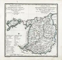 In 1796, the Riga Governorate was renamed as the Governorate of Livonia (Russian: Лифляндская губе́рния / Liflyandskaya guberniya, Latvian: Vidzemes guberņa, Estonian: Liivimaa kubermang). From 1845 to 1876, the Baltic governorates of Estonia, Livonia, and Courland — an area roughly corresponding to the historical medieval Livonia — were administratively subordinated to a common Governor-General. Amongst the holders of this post were Count Alexander Arkadyevich Suvorov[21] and Count Pyotr Andreyevich Shuvalov.