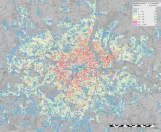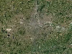 London's diverse cultures encompass over 300 languages.[25] The 2025 population of Greater London of just over 9.8 million made it Europe's third-most populous city, accounting for 13.1 per cent of the United Kingdom's population and 15.5 per cent of England's population.[3][26] The Greater London Built-up Area is the fourth-most populous in Europe, with about 9.8 million inhabitants as of 2011.[4][27] The London metropolitan area is the third-most-populous in Europe, with about 15 million inhabitants as of 2025, making London a megacity.[g][28][29]
