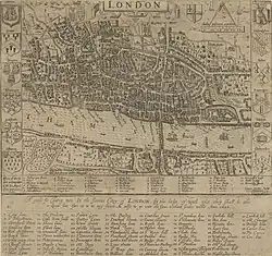In the English Civil War the majority of Londoners supported the Parliamentary cause. After an initial advance by the Royalists in 1642, culminating in the battles of Brentford and Turnham Green, London was surrounded by a defensive perimeter wall known as the Lines of Communication. The lines were built by up to 20,000 people, and were completed in under two months.[64] The fortifications failed their only test when the New Model Army entered London in 1647,[65] and they were levelled by Parliament the same year.[64][66] London was plagued by disease in the early-17th century,[67] culminating in the Great Plague of 1665–1666, which killed up to 100,000 people, or a fifth of the population.[67] The Great Fire of London broke out in 1666 in Pudding Lane in the city and quickly swept through the wooden buildings.[68] Rebuilding took over 10 years and was supervised by the polymath Robert Hooke.[69]
