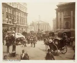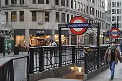 With the onset of the Industrial Revolution in Britain, an unprecedented growth in urbanisation took place, and the number of High Streets (the primary street for retail in Britain) rapidly grew.[76][77] London was the world's largest city from about 1831 to 1925, with a population density of 802 per acre (325 per hectare).[78] In addition to the growing number of stores selling goods, such as Harding, Howell & Co.—one of the first department stores—located on Pall Mall, the streets had scores of street sellers.[76] Rising traffic congestion led to the creation of the London Underground, the world's first urban rail network.[79]
