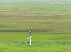 Salt marshes host salt water cordgrass (Spartina alterniflora) along ditches and on the seaside edges of marshes where high tides daily inundate it. Salt meadow cordgrass (Spartina patens) and spikegrass (Distichlis spicata) grow in areas less frequently inundated by saltwater, typically closer to dry land. A short form of salt water cordgrass can sometimes be found in the depressions (pannes) in the higher areas where salt water collects and evaporates, leaving water even higher in salinity than seawater.[5]