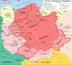 As Margrave Egbert II of Meissen supported anti-king Rudolf of Rheinfelden during the Investiture Controversy, King Henry IV of Germany in 1076 awarded the Milceni lands of Upper Lusatia as a fief to the Bohemian duke Vratislav II. After Emperor Frederick Barbarossa had elevated Duke Vladislaus II to the rank of a King of Bohemia in 1158, the Upper Lusatian lands around Bautzen evolved into a Bohemian crown land. Around 1200, large numbers of German settlers came to Lusatia in the course of the Ostsiedlung, settling in the forested areas yet not inhabited by the Slavs. For centuries, from as early as the Middle Ages, trade flourished, and several important trade routes ran through Lusatia, connecting German states in the west, Poland in the east and Bohemia in the south.[3] In 1319, the region was divided between the Kingdom of Bohemia and the Duchy of Jawor, the southwesternmost duchy of fragmented Piast-ruled Poland, while northernmost parts also passed to the Margraviate of Brandenburg in the following years.[4] From 1368, it was entirely part of the Bohemian Crown.