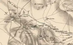 Little consensus has emerged regarding the association of either Biblical place name. The connection of Ain Jalut with the Jezreel spring was rejected by John Wilson in 1847, who identified the Jezreel spring as closer to the ancient city, known today as "Ein Jezreel".[20] In 1874, Victor Guérin countered that although there is a spring closer to the ancient city of Jezreel, the spring in Ain Jalut is much larger and is therefore more likely to be the spring where Saul set his military camp.[21] In 1920, George Adam Smith in 1920 identified the "fountain which is in Jezreel" in Ein Ganim (Jenin), on the other side of Mount Gilboa.[19] Smith suggested that "Jezreel" in that context was not the city, but the name of the district in which the biblical spring was located.[22][23]