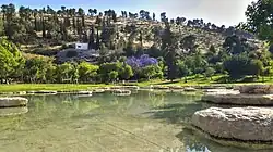 An archaeological survey conducted in the 20th century found flour mills and the remains of an aqueduct dated to Islamic times (either before or after the Crusades) in the immediate vicinity of the spring. The surveyors also found a burial tomb and the remains of an oil press.[7] Settlement remains were discovered at the adjacent Gidona and the nearby Giv'at Yehonatan ("Jonathan's Hill").[7]