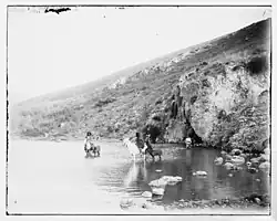 - ^ "'Ain Jalûd, the Fountain of Jezreel, known also as Gideon's Fountain. It flows from a cavernous recess in the base of Jebel Fukû'a (Mount Gilboa), and spreads out at once into a fine limpid pool forty or fifty feet in diameter". The New York Public Library.
