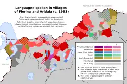 - ^ a b c Van Boeschoten, Riki (1 May 2005). "Usage des langues minoritaires dans les départements de Florina et d'Aridea (Macédoine)" [Use of minority languages in the regions of Florina and Aridea (Macedonia)]. Strates (in French) (10). Strates — Matériaux pour la recherche en sciences sociales. doi:10.4000/strates.381. ISSN 0768-8067. S2CID 161802924. Retrieved 16 February 2019.