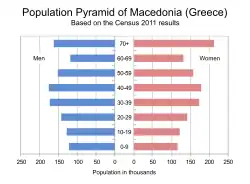 census 2021was invoked but never defined (see the help page). - ^ Thessaloniki is an urban area defined in 1985 through Law 1561/1985. Since the Kallikratis reform it has been made up of the municipalities of Thessaloniki (325,182), Kalamaria (91,518), Neapoli–Sykies (84,741), Pavlos Melas (99,245), Kordelio–Evosmos (101,753), Ampelokipoi–Menemeni (52,127), and the municipal units of Pylaia and Panorama (34,625 and 17,444; part of the municipality of Pylaia–Chortiatis). The Thessaloniki metropolitan area was defined by the same law and is made up of the Urban area plus the municipalities of Delta (45,839), Oraiokastro (38,317), Thermaikos (50,264), Thermi (53,201), and the municipal unit of Chortiatis (18,041; part of the municipality of Pylaia–Chortiatis), for a total of 1,030,338. See Εφημερίς της Κυβερνήσεως της Ελληνικής Δημοκρατίας [Government Gazette of the Hellenic Republic] (in Greek). Athens: National Printing House. 6 September 1985. p. 2332. Retrieved 10 February 2019.