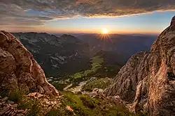 Maglić is important feature of the Sutjeska National Park, which is the first national park within Bosnia and Herzegovina, established in 1962. The park is drained by the Sutjeska River, running through the valley of Tjentište.[6][7]