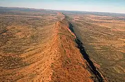 Approximately 144 to 65 million years ago (Cretaceous period), there lay a great inland sea, stretching over one quarter of the mainland.[25] The evaporation of this ocean left behind what we now know as the Western Plateau. The Western and Northern Plateaus incorporate nearly all Western Australia and the Northern Territory and parts of South Australia. Over one-third of the mainland, the Plateaus are made of one stable block of igneous and metamorphic rock which is up to 3.6 billion years old.[21] Despite this, the Plateau is a huge area of tablelands, averaging 500m above sea level in some parts.[19] It is home to Uluru, Kata Tjuta, the Finke River, the Victorian Desert, the Great Sandy Desert and the Gibson Desert. Much of the Western Plateau receives minimal rainfall and thus appears red in colour. Conversely, the Northern Plateau experiences heavy rainfall throughout the wet season (November to April),[24] due to its more tropical location compared to the Western Plateau.