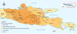 According to Babad ing Gresik (Chronicles of Gresik), the kingdom had tried to attack the Lamongan and Giri (Gresik) areas in 1535. However, the efforts of Arya Terung were unsuccessful, if not failed to maintain their occupation of the two regions.[49] In fact, according to the records in Tedhak Dermayudan, after the failure of the conquest, Arya Terung adopted Islam and spread Islamic teachings throughout Sengguruh.[49] As a result, the Majapahit sympathizers led by Raden Pramana rebelled and made the Arya Terung flee north around the lower reaches of the Brantas River. With the help of Sultan Trenggana who had conquered the former capital of the Singhasari Empire in 1545. Sengguruh succeeded in quelling the rebellion. Raden Pramana fled towards Blambangan. In Serat Kanda, Sultan Trenggana once again appointed Arya Terung as Duke of Sengguruh which was under the Demak Sultanate. In addition, the Malang area after the conquest of Sultan Trenggana changed to Kutho Bedah ("The Destructed City").[50] Sengguruh Kingdom remains in the form of ruins in Sumedang Hamlet, Jenggala Village (on the west side of Sengguruh Village), District Kepanjen, Malang Regency.[49]
