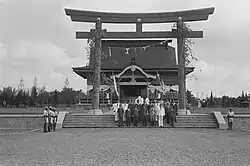During the Japanese occupation in Indonesia, Malang was also occupied by Japan. Imperial Japanese Army began occupying Malang on 7 March 1942. Malang, which was then led by Raden Adipati Ario Sam (R.A.A. Sam), surrendered to the Japanese who were then in power in Malang. Taking over the Government in principle continues the old system (Gemeente), only the designations in positions are replaced with Japanese.[54] During the Japanese occupation there was a shift in the function of local buildings. The houses where the Dutch lived were transferred to Japanese use. The Dutch building on Jalan Semeru (which was used as an office or the headquarters of the Dutch troops,) was converted into a Kempetai building and a Shinto shrine was also built in the city.[55] The Kentapetai building became one of the historical buildings in Malang, which is now a private vocational school building and witnesses the disarmament of the Japanese by the People's Security Agency (BKR) in order to strengthen the defence of Malang.[56]