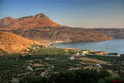 The Mani Peninsula, like much of southern Greece, has a hot-summer Mediterranean climate (Köppen climate classification Csa).[4] The Messenian, or Outer, Mani receives somewhat more rainfall than the Laconian, or Inner and Lower, Mani (see rain shadow) and as a consequence is more agriculturally productive. Locals call the Messenian Mani aposkiaderi 'shady' and the Laconian prosiliaki 'sunny'.[5]
