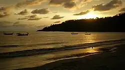 Pangkor Island, a holiday resort, is one of the most well known islands in Malaysia. It is located approximately 90 km southwest of Ipoh. The main tourist drawer to Pangkor Island are beaches on the western coastline, such as Pantai Puteri Dewi, Pasir Bogak Beach, Teluk Belanga, Teluk Segadas, Teluk Nipah, and Teluk Cempedak.
