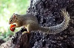 Squirrel eats a fruit in Manyara National Park, Tanzania.
