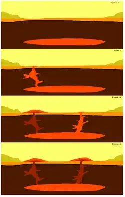 (defined by local formations and deformations, instead of global stratigraphic) |
