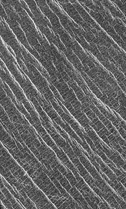 Tesserae are regions of heavily deformed terrain, mostly located on highland areas (greater than 2 km in elevation) on Venus. This tectonic feature -or uni— is thought to be the oldest material on Venusian surface with highest level of tectonic deformation.[17][18] It is of high topography and seen in white on the SAR images with high radar backscatter.[19] The materials composed tessa terrain, which was named as unit Tt in the mapping of V-17(Basilevsky, A. T.,1996).[20]