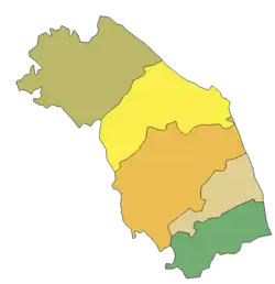 After the referendum of 2006, 7 municipalities of Montefeltro were detached from the Province of Pesaro and Urbino to join the Province of Rimini (Emilia-Romagna) on 15 August 2009.[22][23] The municipalities are Casteldelci, Maiolo, Novafeltria, Pennabilli, San Leo, Sant'Agata Feltria and Talamello.