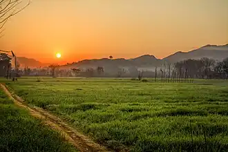 ![]() ![]() ![]() ![]() ![]() Images, from top down, left to right: Fields and mountains in Swabi District; A sunset near Swabi; Swat Expressway at Mardan; Guides' Memorial in Mardan; A lake in Swabi District | |