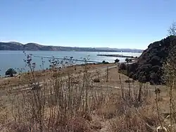Mare Island (Spanish: Isla de la Yegua) is a peninsula in the United States in the city of Vallejo, California, about 23 miles (37 km) northeast of San Francisco. The Napa River forms its eastern side as it enters the Carquinez Strait juncture with the east side of San Pablo Bay. Mare Island is a peninsula, as no full body of water separates this or several other named "islands" from the mainland. Instead, a series of small sloughs cause seasonal water-flows among the so-called islands. Mare Island is the largest of these at about 3.5 miles (5.6 km) long and a mile wide.