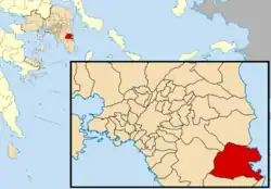 Markopoulo Mesogaias (Greek: Μαρκόπουλο Μεσογαίας) is a town and a municipality in East Attica, Greece. The municipality has an area of 81.844 km2 (31.600 sq mi).[3]