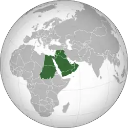 The region includes the Arab-majority states of Bahrain, Egypt, Iraq, Jordan, Kuwait, Lebanon, Oman, Palestine, Qatar, Saudi Arabia, Sudan, Syria, the United Arab Emirates, and Yemen.[3][6][7][8]