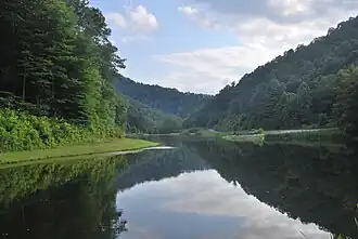 According to the United States Census Bureau, the county has a total area of 534.899 square miles (1,385.38 km2), of which 533.458 square miles (1,381.65 km2) is land and 1.441 square miles (3.73 km2) (0.27%) is water.[18] It is the 13rd largest county in West Virginia by total area.[19] The county is roughly in the shape of a semi-circle, with the border following the mountains around the county.