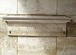 A copy of the "provisional" metre located in the wall of a building, 15 rue de Vaugirard, Paris. These metres were provisional (French: provisoire) because the expedition and the calculations to determine the definitive length of metre were not completed until 1799.[22][23]