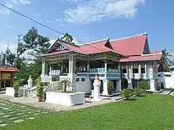 - Tun Teja Mausoleum - The burial place of Tun Teja Ratna Benggala, consort of Sultan Mahmud Shah who ruled Malacca from 1458 to 1511.[13] She was believed to have died on the way to Muar, Johor, when the sultan was escaping the invasion of the Portuguese in 1511 and was buried at Kampung Pengkalan Samak.[14] The mausoleum is located in the middle of a paddy field, with her tomb painted in white and the headstone is covered with yellow cloths.[15]
