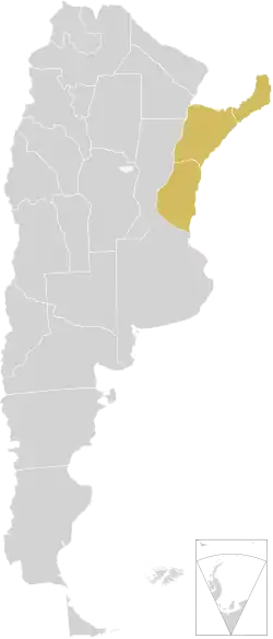 The Mesopotamia or Región Mesopotámica is the humid and verdant area of northeast Argentina, comprising the provinces of Misiones, Entre Ríos, and Corrientes.[1] The landscape and its characteristics are dominated by two rivers: the Paraná and the Uruguay.[2]
