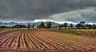 Since the latter 20th century, the valley has become an important agricultural center for the state of Hidalgo, growing corn, beans, wheat, onions, tomatoes, cactus fruit, and peaches; the valley also produces one-quarter of all green chili peppers grown in Mexico.[3][5] It also produces alfalfa, principally used to feed the area's cattle.[3][5] A small but important quantity of lettuce, cabbage, cilantro, radishes, carrots, spinach, and parsley is grown.[1] There are also a number of fish farms, especially in Tezontepec de Aldama.[3] About 61% of the population works in agriculture,[5] which has been made possible by the diversion of wastewater from the neighboring Valley of Mexico through the Tula River. Sixty percent of the farmland is irrigated with wastewater. Thirty nine percent of the farmland is dependent on clean water sources such as wells and rain, and only 0.38 percent is irrigated with treated water. The areas most dependent on wastewater are: Actopan, Ajacuba, Alfajayucan, Atitalaquía, Atotonilco de Tula, Francisco I. Madero, Chilcuautla, Mixquihuala, San Salvador, Tasquillo, Tetepango, Tezontepec, Tlahuelilpan, and Tlaxcoapan. The areas that use wastewater are more productive, as the water contains phosphorus and nitrogen, but the products are more likely to have problems with contaminants. These contaminants also pose a risk to farm workers and their families.[1][5]