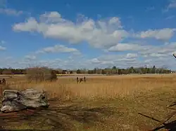 Union strength in the area, however, was tested by a series of Confederate offensives beginning in the summer of 1862, which culminated in Union General William Rosecrans's Army of the Cumberland routing Confederate General Braxton Bragg's Army of Tennessee at the Battle of Stones River in Murfreesboro in December 1862 and January 1863.[23] This was one of the bloodiest battles of the entire war.[23] In February, the Confederates took about 670 to 870 casualties in the Battle of Dover when Colonel Abner C. Harding defeated the 2500 Confederate troops with 800 Union soldiers. The next summer, Rosecrans's Tullahoma campaign forced Bragg's remaining troops in Middle Tennessee to flee to Chattanooga with little fighting.[24] The last major battles in Middle Tennessee occurred during the Franklin–Nashville campaign in the fall of 1864, when the Army of Tennessee under the command of General John Bell Hood unsuccessfully tried to lure Union General William Tecumseh Sherman, who was conducting the Atlanta campaign in Georgia, back into the region. Hood was defeated at the Battle of Franklin in November, then completely dispersed from the state by General George Thomas at the Battle of Nashville the following month.[25] The United States Colored Troops (USCT) played a major role in this campaign.[25]
