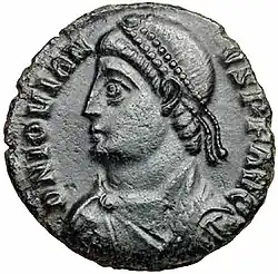 The emperor Jovian (363-364) who reestablished Christianity as the official religion of the Roman Empire was born in Moesia Prima, in Singidunum. In his early career, later to become Roman emperor, Theodosius I served as military commander of Moesia Prima in 373.[5] In 382 the Roman emperors Theodosius I and Gratian met in Viminacium, the capital of Moesia Prima, during the Gothic Wars.[6]
