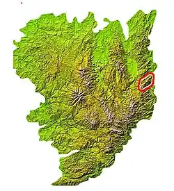 The Pierre des Trois évêques (Three Bishops' Stone) is in the commune of Saint-Régis-du-Coin.[19] It marked the meeting point of three provinces of Roman Gaul: Lyon, Narbonne and Aquitaine. Under Charlemagne the stone marked the point where Aquitaine, Provence and Burgundy met, and was used as a reference point during the partition of the empire in 843 AD. In the Middle Ages it delineated the Archdioceses of Lyon, Vienna and Puys.[20]
