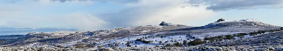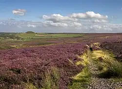 Moorland or moor is a type of habitat found in upland areas in temperate grasslands, savannas, and shrublands and the biomes of montane grasslands and shrublands, characterised by low-growing vegetation on acidic soils. Moorland today generally means uncultivated hill land (such as Dartmoor in South West England), but also includes low-lying wetlands (such as Sedgemoor, also South West England). It is closely related to heath, although experts disagree on the exact distinction between these types of vegetation. Generally, moor refers to highland and high rainfall areas, while heath refers to lowland zones which are more likely to be the result of human activity.[1]