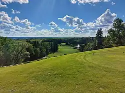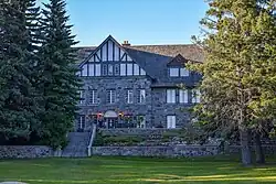 At the heart of Moose Mountain Upland is Moose Mountain Provincial Park, which features the Moose Mountain Chalet and an 18-hole golf course.[25] The development of the park and the building of the Chalet between 1931 and 1933 were part of an effort by the Saskatchewan Government to get people working during the Great Depression. The chalet and golf course were built in tandem with the idea of bringing wealthy people to the park. The largest lake on the plateau, Kenosee Lake, is found in the park. Kenosee Lake is stocked with fish, has a beach area, docks, miniature golf, and camping. Overlooking the lake is the Kenosee Inn & Cabins which features a conference room, 30 hotel rooms, and 23 cabins.[26] Three Christian camps, Kenosee Lake Bible Camp,[27] Clearview Christian Camp,[28] and Kenosee Boys & Girls Camp[29] are located on the western shore of the lake in Christopher Bay at the site of the former Arcola Resort. Also on the lake is the village of Kenosee Lake which has services such as a gas station, restaurant, and convenience store. To the east of the village, just off Highway 9, is Kenosee Superslides. There is also a ball diamond and hiking trails. Red Barn Market is located 5 kilometres (3.1 mi) north of Kenosee Lake near, the intersection of Highways 9 and 48.[30] In the winter there is ice fishing, a tobogganing hill, and sledding. On the White Bear First Nation, there is the Bear Claw Casino & Hotel, Carlyle Lake Resort, and White Bear Lake Golf Course.[31]