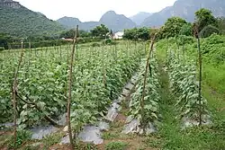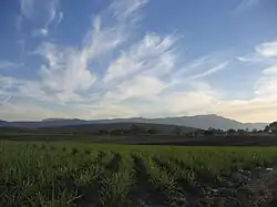 Historian Ward Barrett considers that the "region now known as Morelos has a physical unity sufficient to define and set it in strong contrast to other regions of Mexico."[13][14] Much of this definition comes from its geography, which is a basin into which abundant water flows. The arrival of the Spanish shifted agriculture from subsistence maize production and cotton cultivation to sugar cane and the refining of such into sugar in nearby mills. This system would remain more or less intact until the Mexican Revolution.[15]