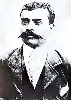 This situation made the state ripe for the Mexican Revolution and the base for one of the best-known revolutionaries from this period, Emiliano Zapata, who was born in Anenecuilco, Ciudad Ayala.[15] Some of the first outbreaks of violence took place in Cuernavaca under Genovevo de la O from Santa María Ahuacatitlán in 1910.[47] Zapata's victory in the bloody Battle of Cuautla (11–19 May 1911) brought about Porfirio Diaz's abdication, but also led to the press labeling Zapata the Attila of the South.[48] But then, Government forces led by Victoriano Huerta attacked towns and cities in the state, trying to take it back.[49] Shortly afterwards, on 17 August, revolutionaries sacked Jojutla.[50]