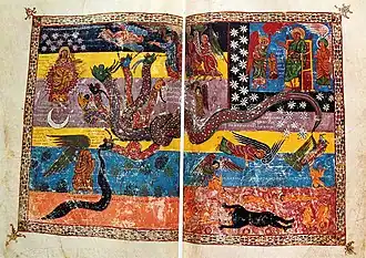 The Morgan Beatus (New York, Morgan Library & Museum, MS 644) is an illuminated manuscript with miniatures by the artist Magius (or Maius) of the Commentary on the Book of the Apocalypse by the eighth-century Spanish monk Beatus, which described the end of days and the Last Judgment. The manuscript is believed to have been produced in and around the scriptorium of the Monastery of San Miguel de Escalada in Spain.[1]