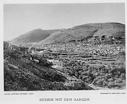 Moriah /mɒˈraɪə/ (Hebrew: מוֹרִיָּה, Mōrīyya; Arabic: ﻣﺮﻭﻩ, Marwah) is the name given to a region in the Book of Genesis, where the binding of Isaac by Abraham is said to have taken place. Jews identify the region mentioned in Genesis and the specific mountain in which the near-sacrifice is said to have occurred with "Mount Moriah", mentioned in the Book of Chronicles as the place where Solomon's Temple is said to have been built, and both these locations are also identified with the current Temple Mount in Jerusalem.[1] The Samaritan Torah, on the other hand, transliterates the place mentioned for the binding of Isaac as Moreh, a name for the region near modern-day Nablus.[2] It is believed by the Samaritans that the near-sacrifice actually took place on Mount Gerizim, near Nablus in the West Bank.[3]