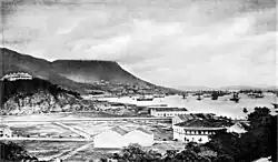 The hill was at the seashore until the Praya East Reclamation Scheme in the 1920s, which used its constituent rock/earth to reclaim land from the harbour, extending the shoreline away from the area. This major operation took most of the decade and to carry away the rock and soil, temporary railway tracks were laid, running along Bowrington Canal (present day Canal Road),[3] which was covered over for the purpose.