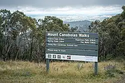 The mountain is now part of the 15-square-kilometre (5.8 sq mi) Mount Canobolas Conservation Area, managed by the NSW National Parks & Wildlife Service, which offers various walks: to Bald Hill; to Young Man Canobolas; Federal Falls to Mount Towac, and other locations.[4] The volcanic peaks give wide views and there are some attractive waterfalls.