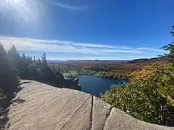 Mount Pinacle (French: Le Pinacle) is a mountain located in Coaticook, Quebec Canada. The mountain has five hiking trails of varying difficulty, covering approximately 7 kilometres (4.3 mi), that visitors can explore with the purchase of an admission ticket.[4] Experienced rock climbers may scale the face of the hill starting from Lake Lyster. The mountain is exploited for its abundance of maples, with a sugar bush running along a portion of its trails.