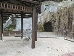 A silver and lead mine, close to the settlement of Pak Ngan Heung and Sivermine Waterfall, formally opened in March 1886.[5] It had closed by the time China leased the New Territories to Britain in 1898.[6] The main entrance is now called Silvermine Cave. People can only enter the first ten metres or so as the rest of the tunnels have been blocked off for safety reasons, and to prevent disturbance to the rare species of bats who live there.[7]