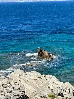 - Camel Rock – a rock formation off the coast and near the windmills at "Kato Mili". It derives its name from its appearance which resembles a camel sitting in the shallow blue and green water.