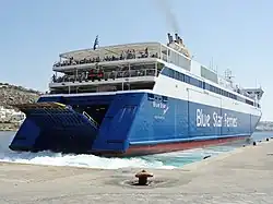 Mykonos is also accessible by boat and ferries. High speed vessels visit daily from the surrounding islands and from Athens.[45]