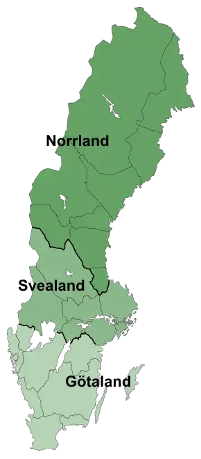 | NUTS 1 | Lands (Swedish: landsdelar) | 3 |