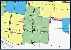 - ^ Lands in the San Luis Valley were surveyed as part of New Mexico prior to the Civil Expenses Appropriation act of 2 March 1867 which provided for the survey of the 37th parallel north. 39th Congress, Session II, Chapter 167 (1867) 14 Statutes at Large 466 New Mexico had lost approximately 14,948 square miles, as all of the territory north of the 37th parallel was given to Colorado when it was created in 1861. 36th Congress, Session II, Chapter 59 (28 February 1861) 12 Statutes at Large 172 See Baldwin, P.E. (1930) "A Historical Note on the Boundaries of New Mexico" New Mexico Historical Review 5(2): pp. 117-137, p. 132 and map facing p. 128