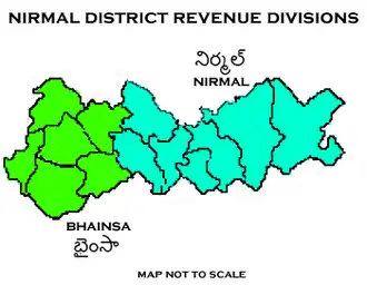 The district has two revenue divisions of Nirmal and Bhainsa, which are in-turn sub-divided into 19 mandals.