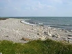 Nissum Bredning continues to the east to the cliff at Toftum Bjerge, which is up to 35 meters high and has layers from three different ice ages. There is a large area with holiday homes at Toftum, and from here the coast turns north to Grisetåodde and Oddesund, where the bridge leads both the road and the railway over to Thyholm, which southern part is called Sunddraget.